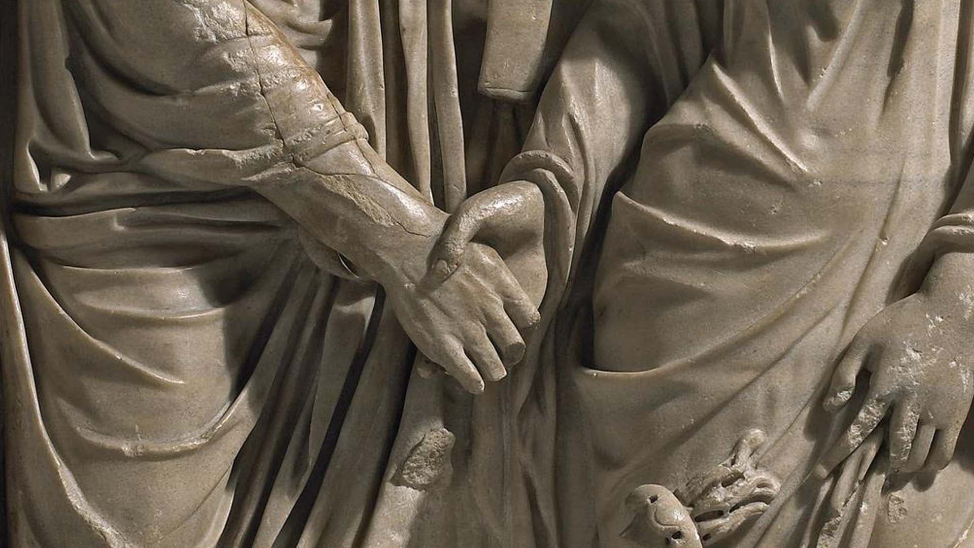 Early depictions of a deity grasping the hand of a king or temple petitioner are found in Egyptian, Roman, and early Christian artwork.4 These scenes are especially prevalent in “the most sacred and (to the unauthorized) inaccessible precincts of the temple” in ancient Egypt and may relate to coronation or receiving the king “into the presence of the gods.”5