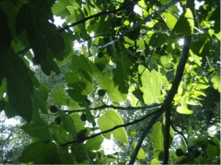 The Hebrew expression “knowledge of good and evil” can mean knowledge of what is good and bad, or of happiness and misery—or, most arguably, of “everything,” if “good and evil” can be taken to mean the totality of all that is, was, or is yet to be.3 The variegated light and darkness in the photograph of the fig tree shown above suggests the ambivalent nature of this symbolism.